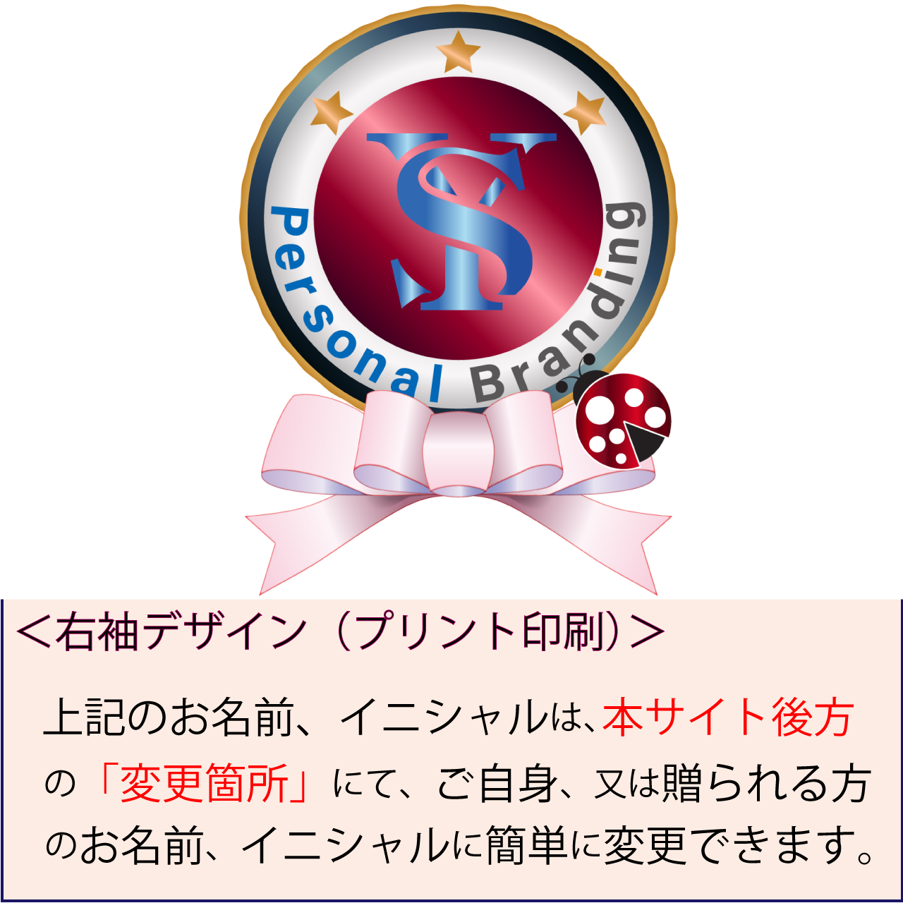 右袖や背面襟下にも、「イニシャル入り」
