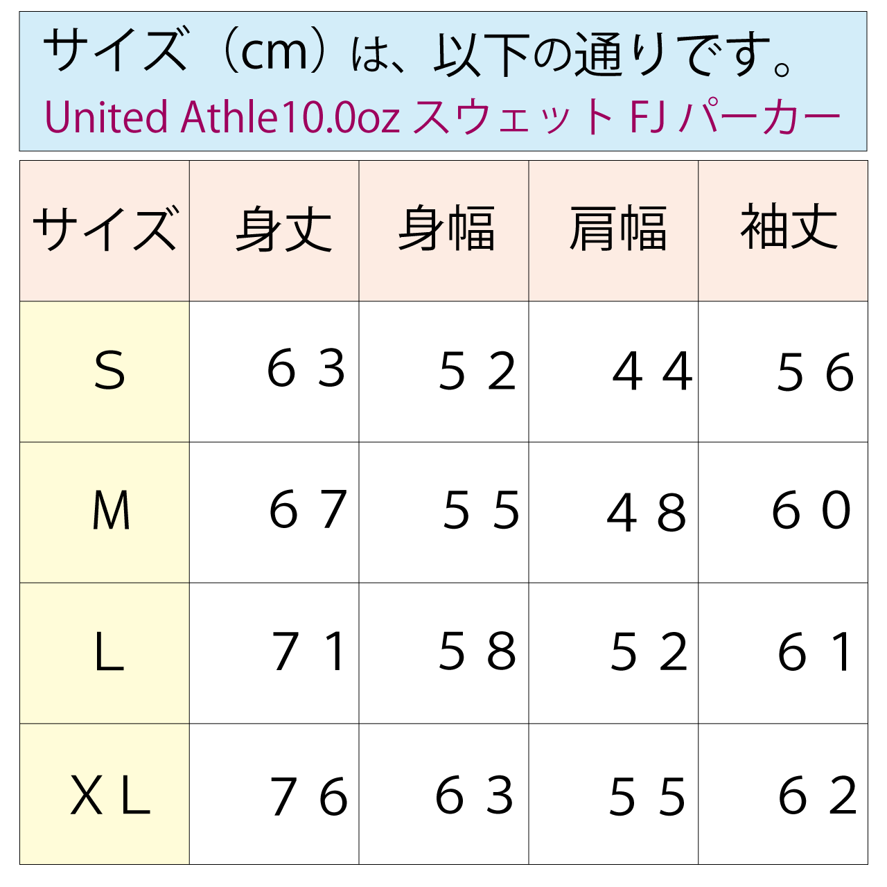 ※サイズ(cm)内容は、以下の通りです。