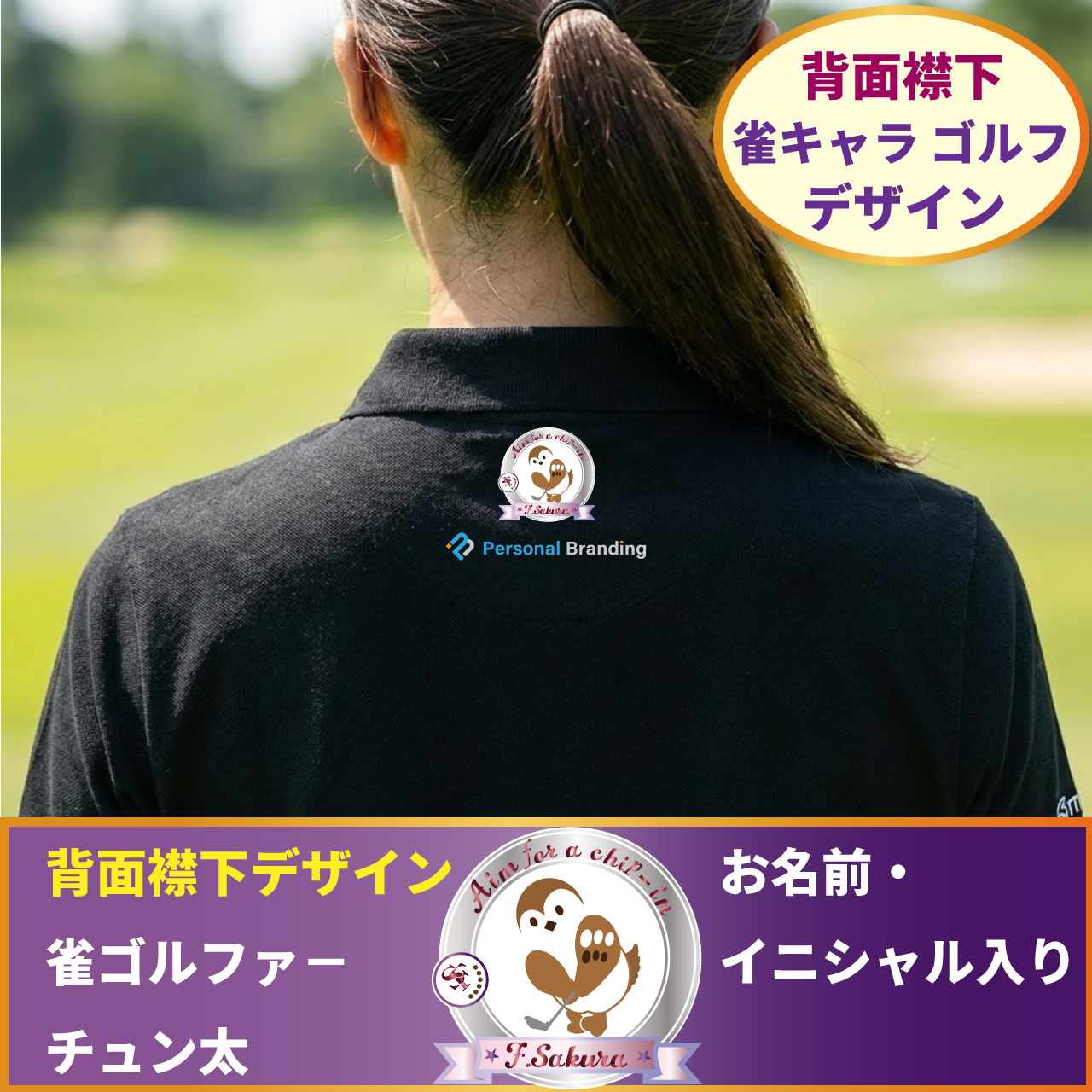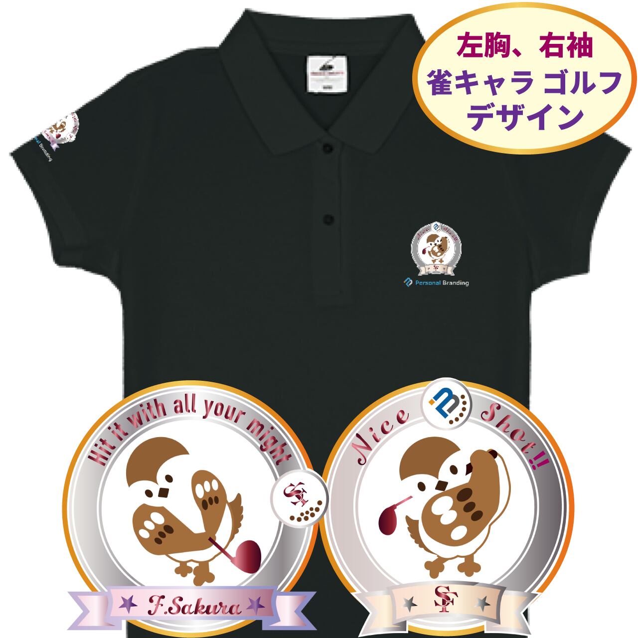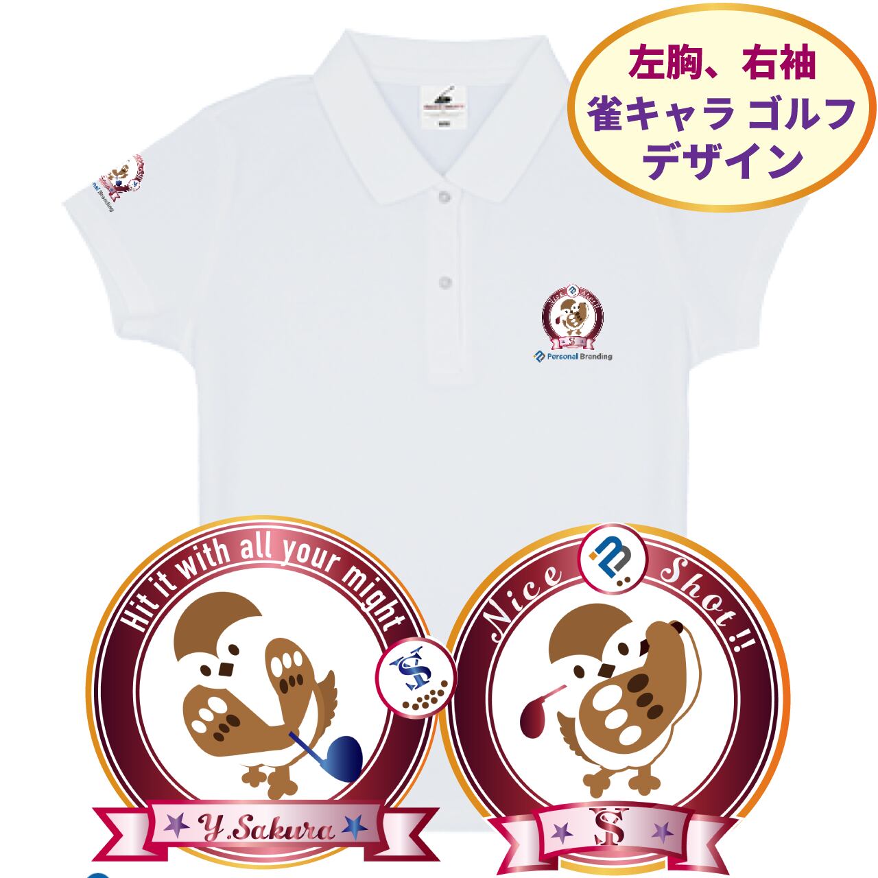 雀ゴルフキャラ(チュン太) ポロシャツ(イニシャル入り)全4色