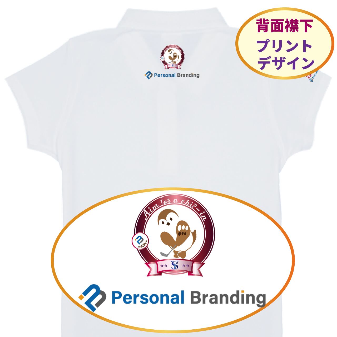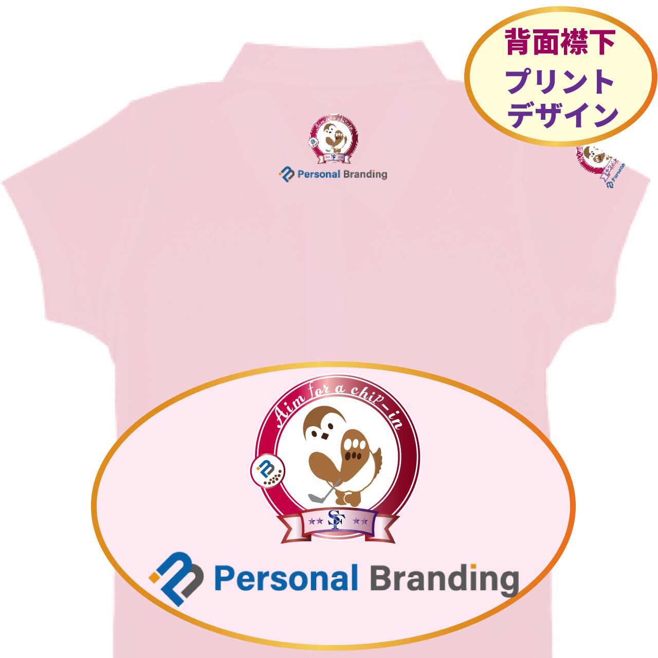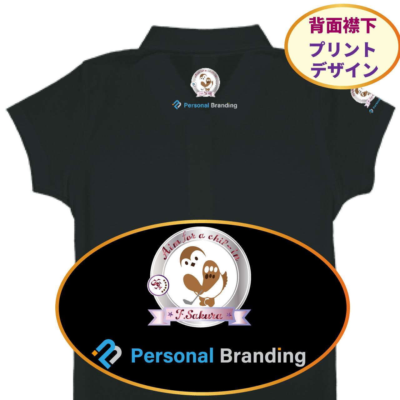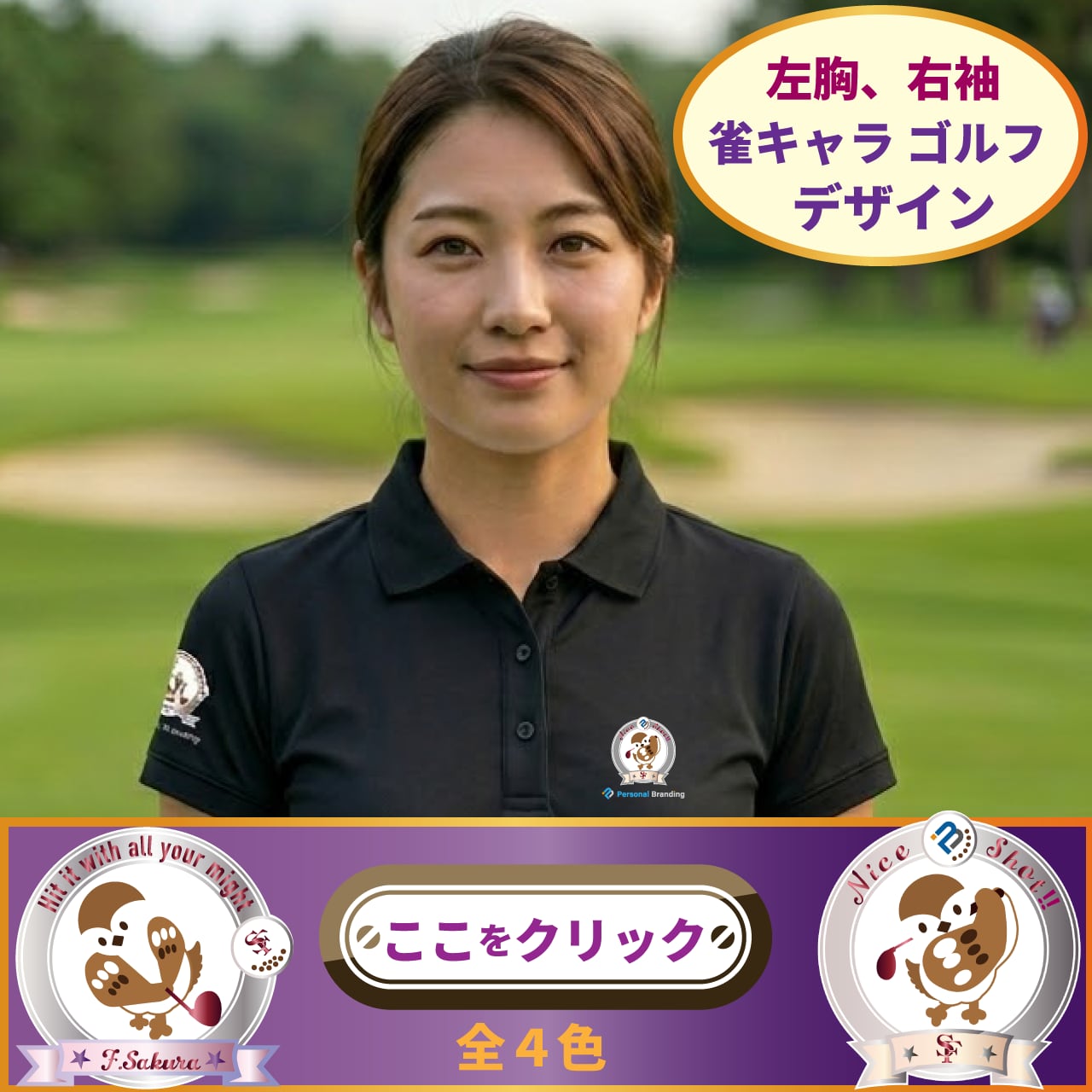雀ゴルフキャラ(チュン太) ポロシャツ(イニシャル入り)全4色