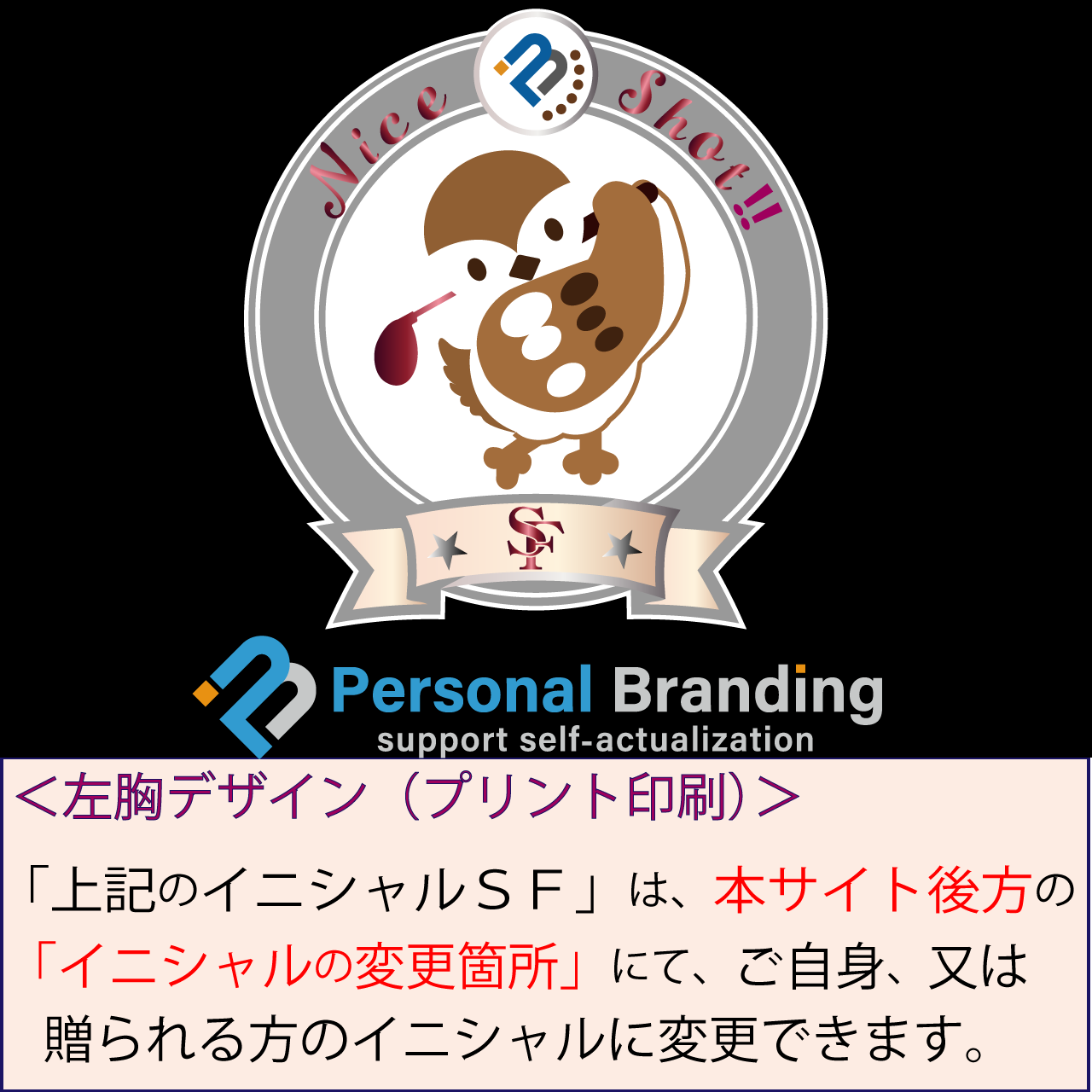 ※写真左胸、右肩袖の「イニシャル」は、